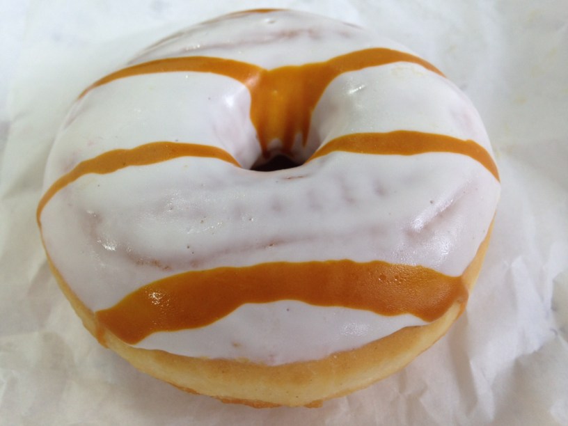 It’s a light doughnut with caramel filling. It has a thin layer of sweet icing on top.