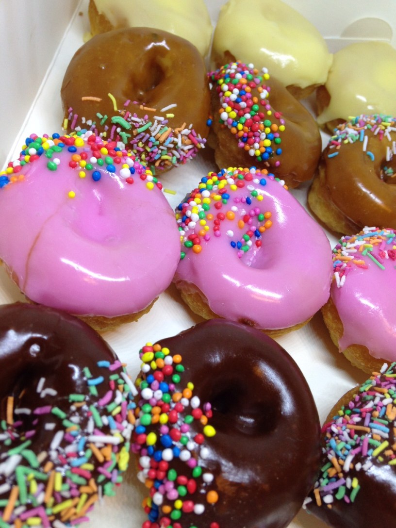 You simply don’t see mini doughnuts these days. And I can understand why. They must be a lot of work for not much return. Putting icing on those little things must be a cow of a task. And then being so precise with the sprinkles – it would take a jeweller to decorate one.