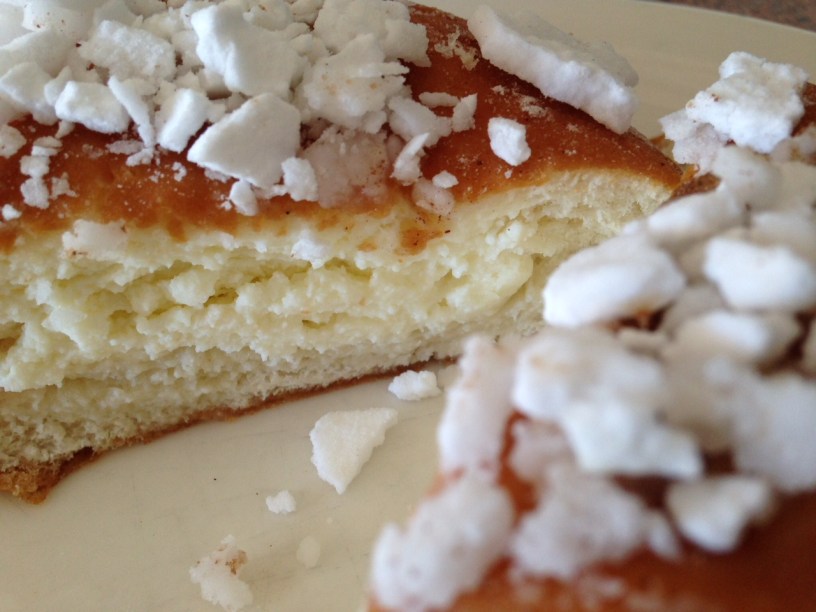 I took it home. As I said it was a hot day, so it didn’t travel too well. You can see in the photos that the icing changed. But it was still delicious. The ricotta ever so slightly sweet.