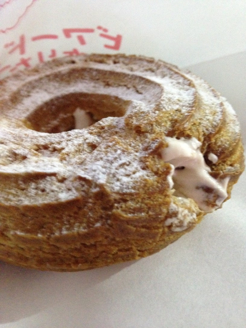 Beard Papa’s is a small chain of stores that sell custard puffs. They have one in the shape of a doughnut, so I’m calling it a doughnut. They call it a Paris Brest, which I discover is a French dessert made of choux pastry and a praline flavoured cream. I’m still calling it a doughnut. I guess it’s legacy of when Vietnam was a French Colony. (I could of course make lots of Brest jokes, but I’ll keep this on a family level).
