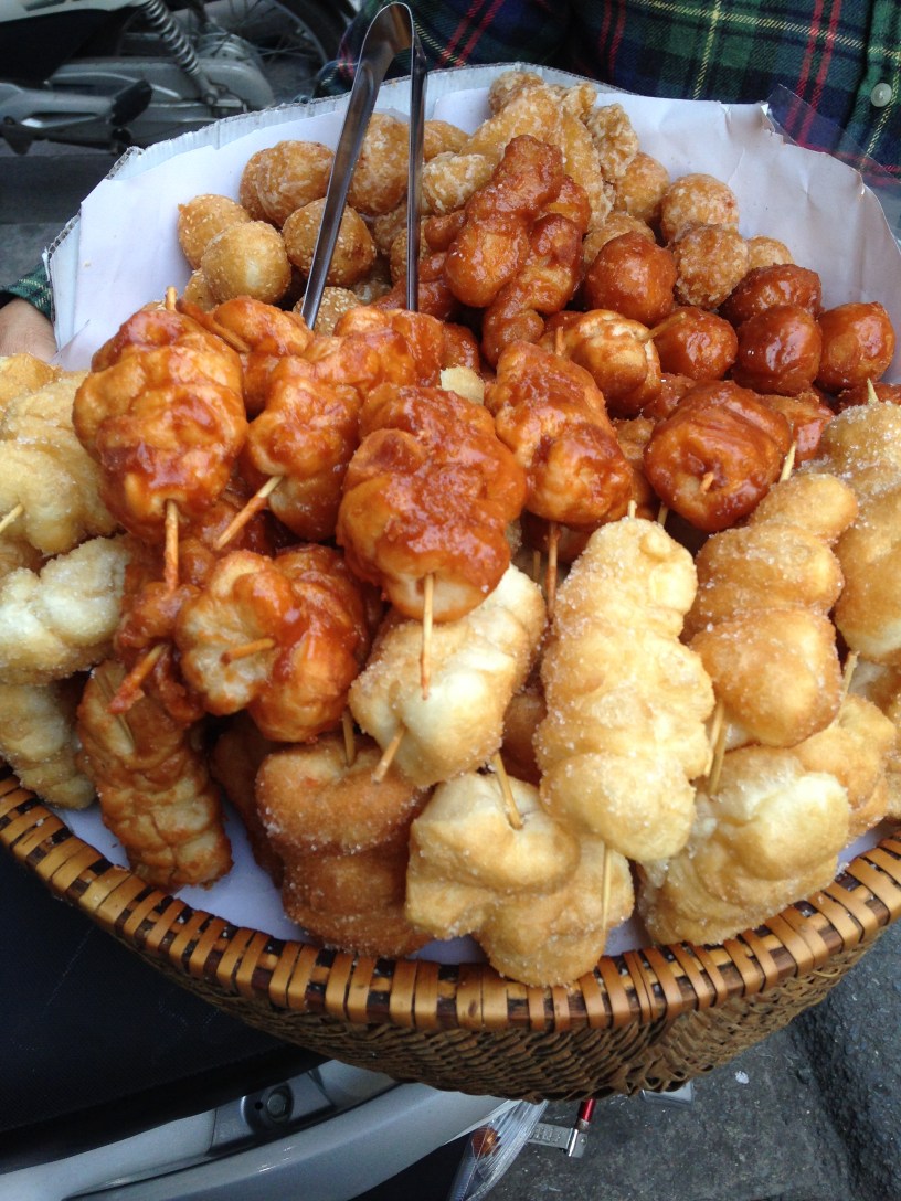 I decided I had to try one of the doughnut-type things some Vietnamese women were selling from baskets in the Hanoi Old Quarter.