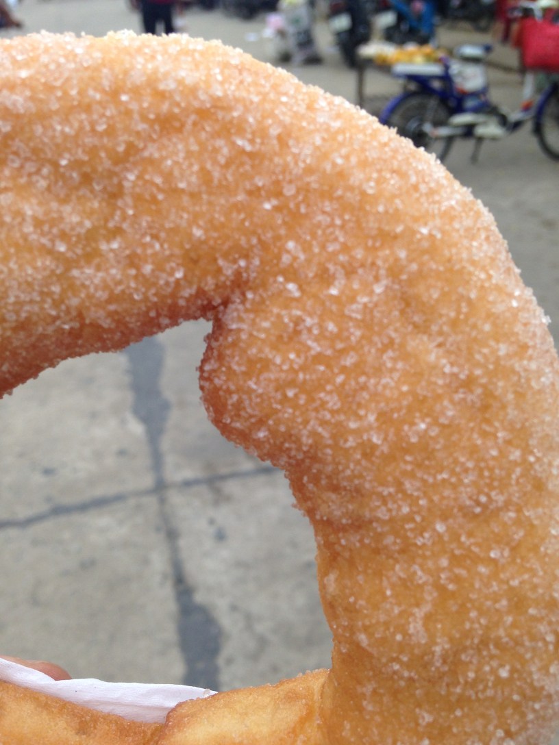 I spotted a lady selling doughnuts from a street stand. They looked a bit boring, but I had to try one. What appeared boring turned out to be anything but.
