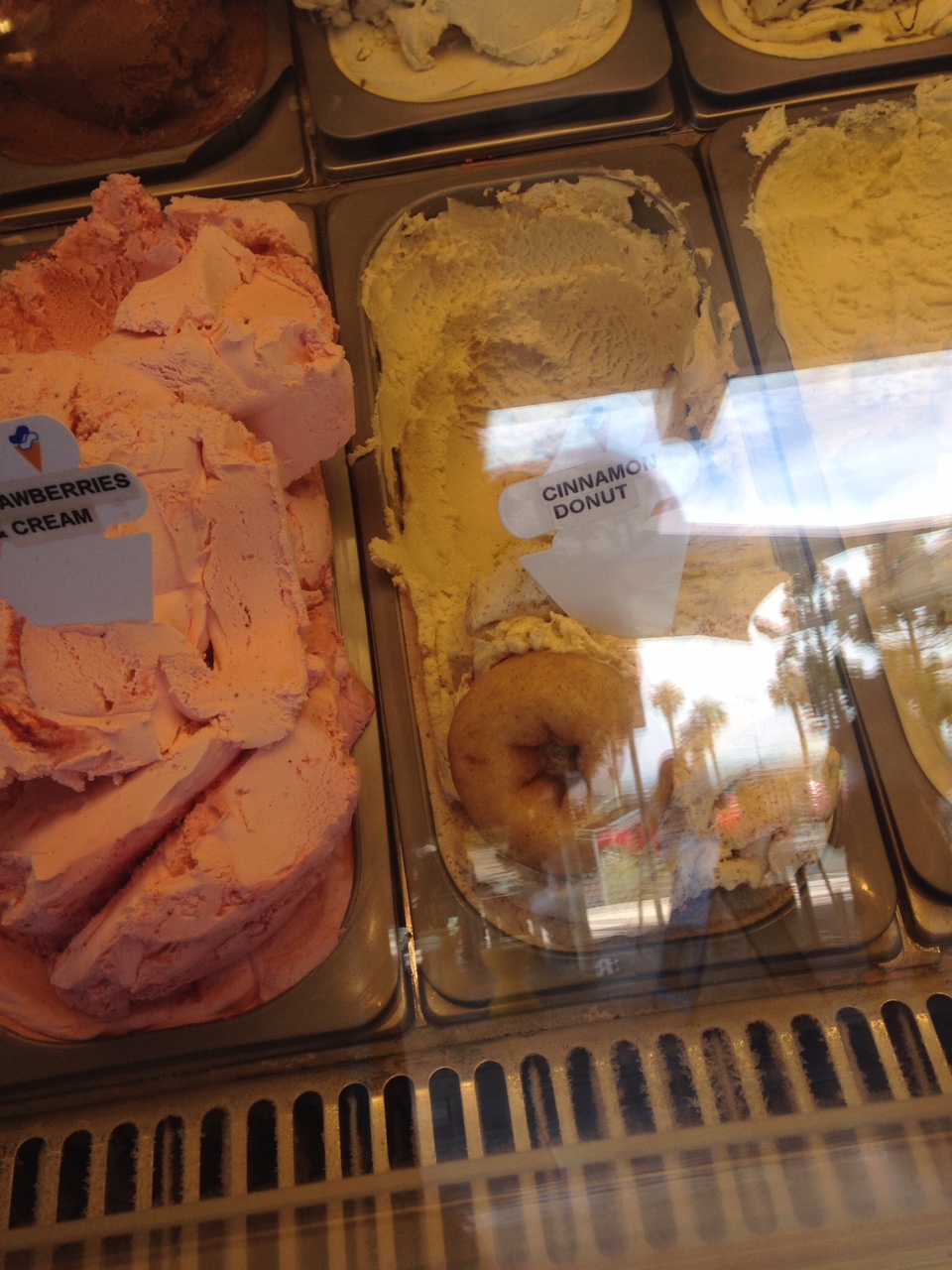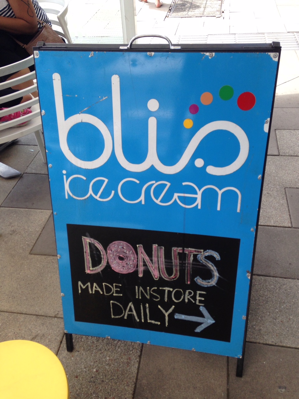 Along Geelong’s waterfront are lots of cafés and eateries. There is an ice-cream shop called Blis. Blis sells small doughnuts and a doughnut flavoured ice-cream. They have plain cinnamon doughnuts as well as a selection of ‘glazed’ (they mean ‘iced and decorated’). I chose not to have a doughnut or the ice-cream.