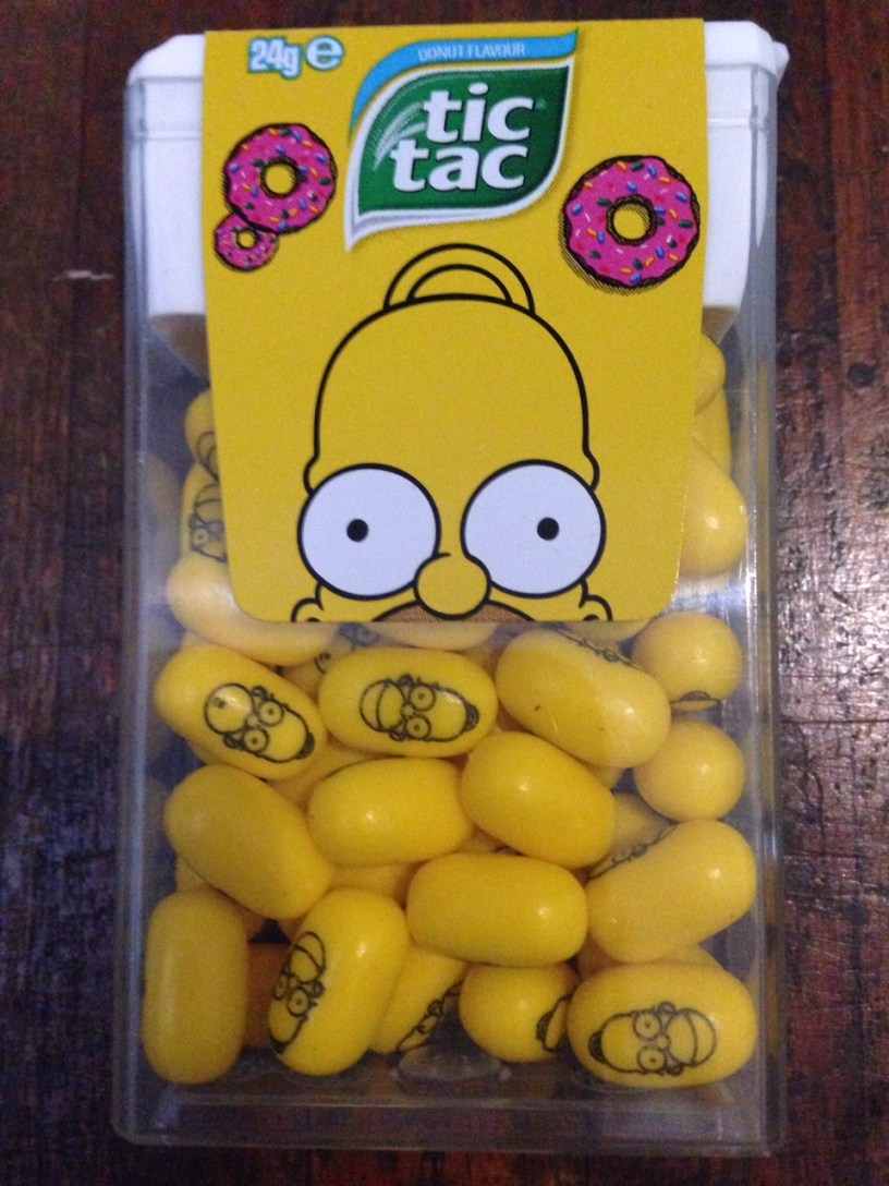 It was drawn to my attention that Tic Tacs had released a (probably) limited edition range branded with The Simpsons. The Tic Tacs website doesn’t say whether they are limited edition or not, but I reckon they are.
