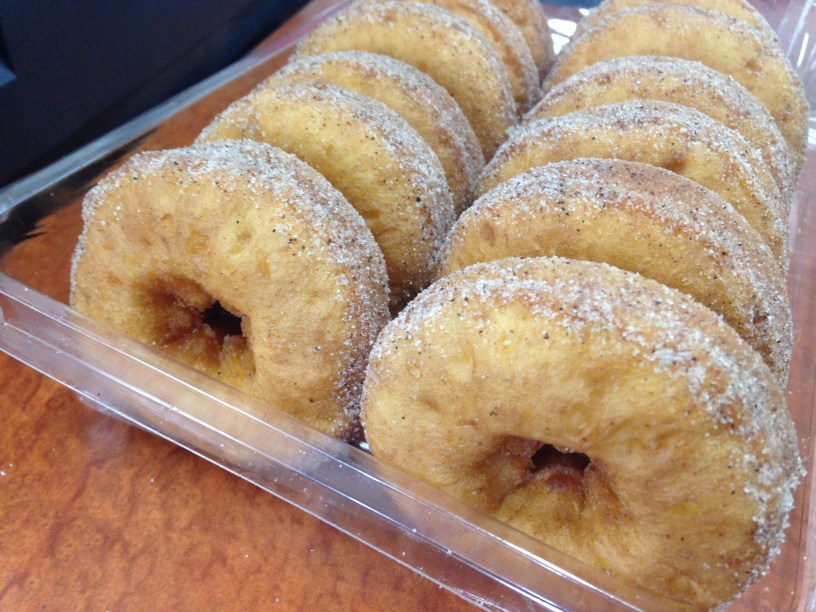 So I got some small cinnamon doughnuts from Woolworths at Mortdale. They have an in-store bakery, so I know the doughnuts are made there. Well, I think they are. They make lots of bread, so I’m assuming the doughnuts are made there too.