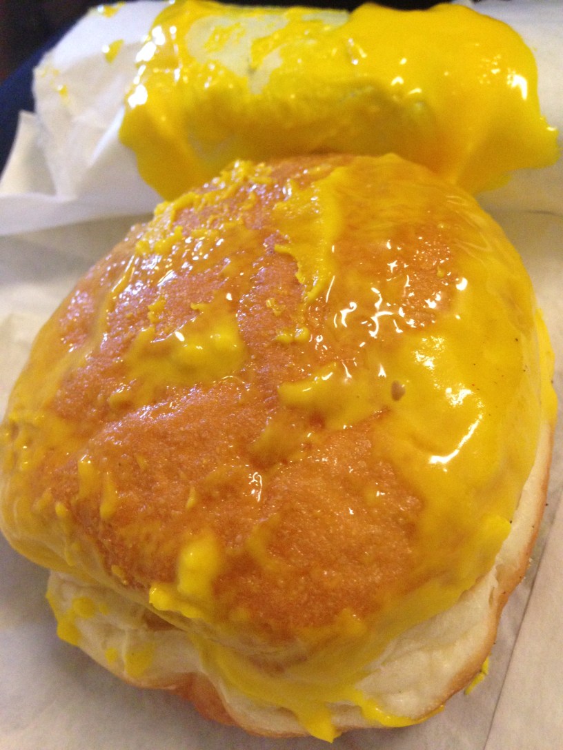 The only problem was that the pineapple icing stuck to the bag. I didn’t carry it for long, but it just about completely came away. I’ll have to remember to be more careful next time I get one of their iced doughnuts.
