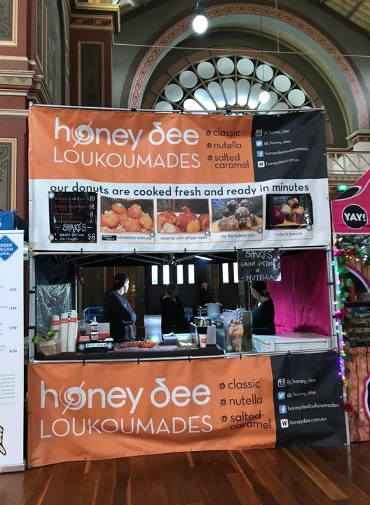 Honey Dee makes loukoumades at markets around Melbourne. They have fairly large variety of flavours that they pour over the loukoumades.
