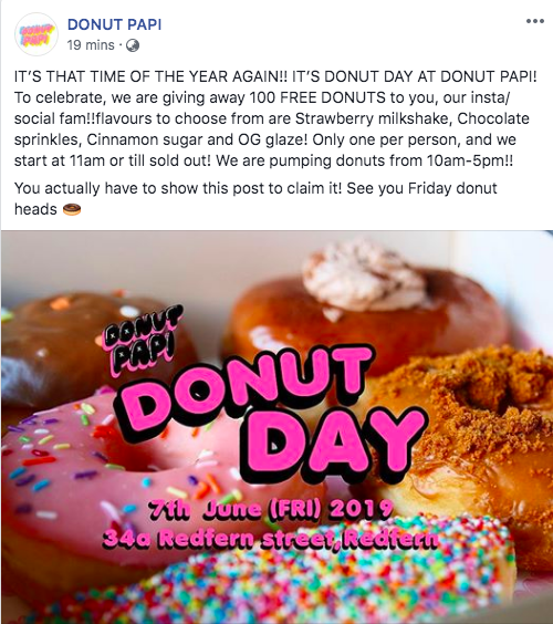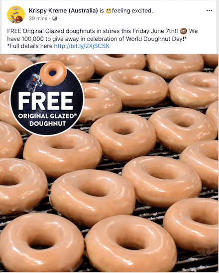 The leader seems to be Krispy Kreme who are giving away 100,000 doughnuts across Australia.