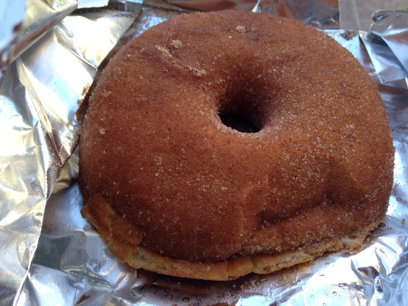 I didn’t have to wait long before I was handed a foil bag. I could feel the doughnut was not just warm but hot.