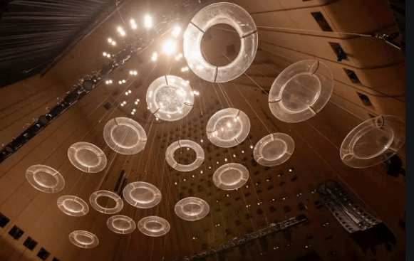 If you don’t know, the doughnuts were placed in the Concert Hall when the Opera House was built to improve the acoustics. The Opera House opened in October 1973 and the doughnuts have remained suspended all this time.