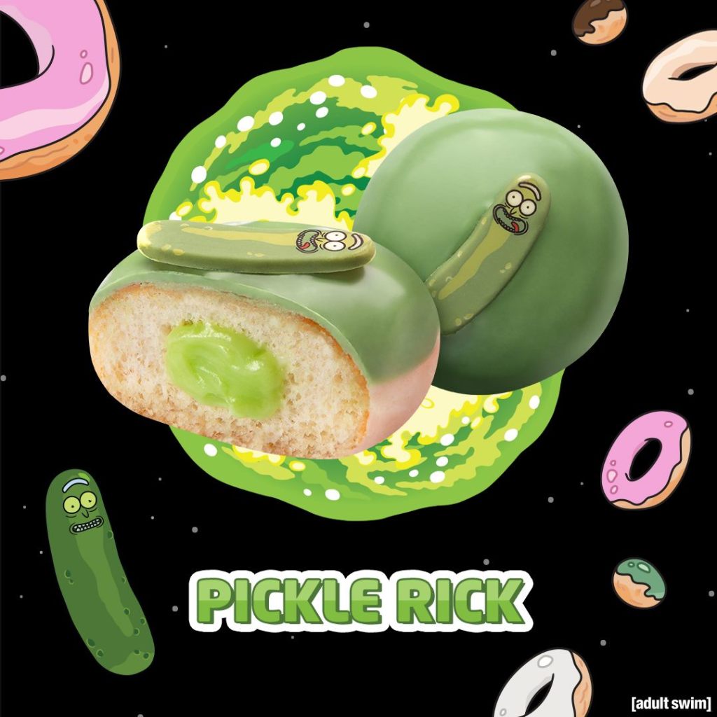 There is a Pickle Rick Doughnut. Yuck, you say, a pickle-flavoured doughnut. The Krispy Kreme website assures us that it’s actually “From a reality where pickles taste like lemon crème and white choc…!” So it’s not really pickle-flavoured. It’s inspired by the fabulous episode where Rick turns himself into a pickle to avoid going to a school function.