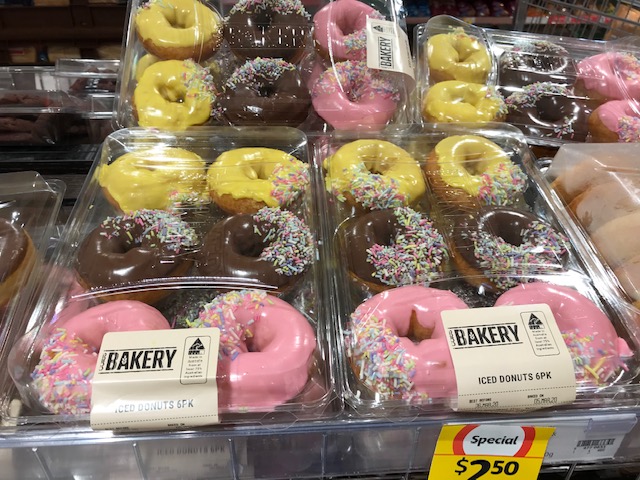 I was walking around Coles in Pyrmont one morning when the woman with the fresh doughnuts made an appearance. She roughly shoved as many packs of doughnuts into the shelf-space as she could. If she could have squashed more in, she would have, but there just wasn’t enough give in the plastic packs.