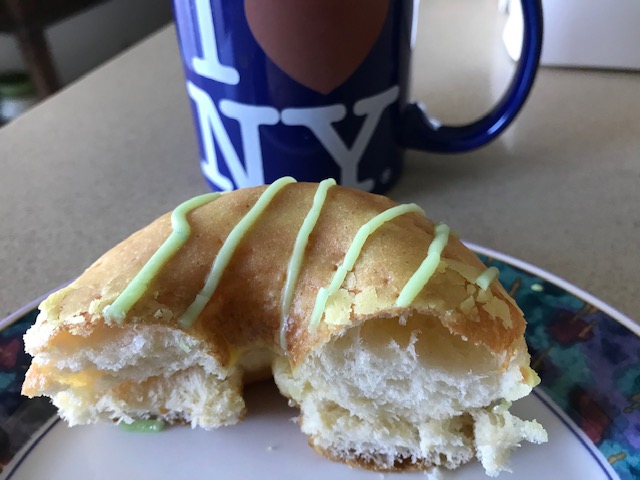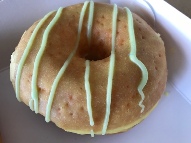 I could see straight away that this wasn’t the same as the tuck shop pineapple doughnut – and I’m talking about the variety with the glazing. The colour was lighter and the glaze wasn’t the same. The pineapple flavour wasn’t as intense as the tuck shop doughnut.