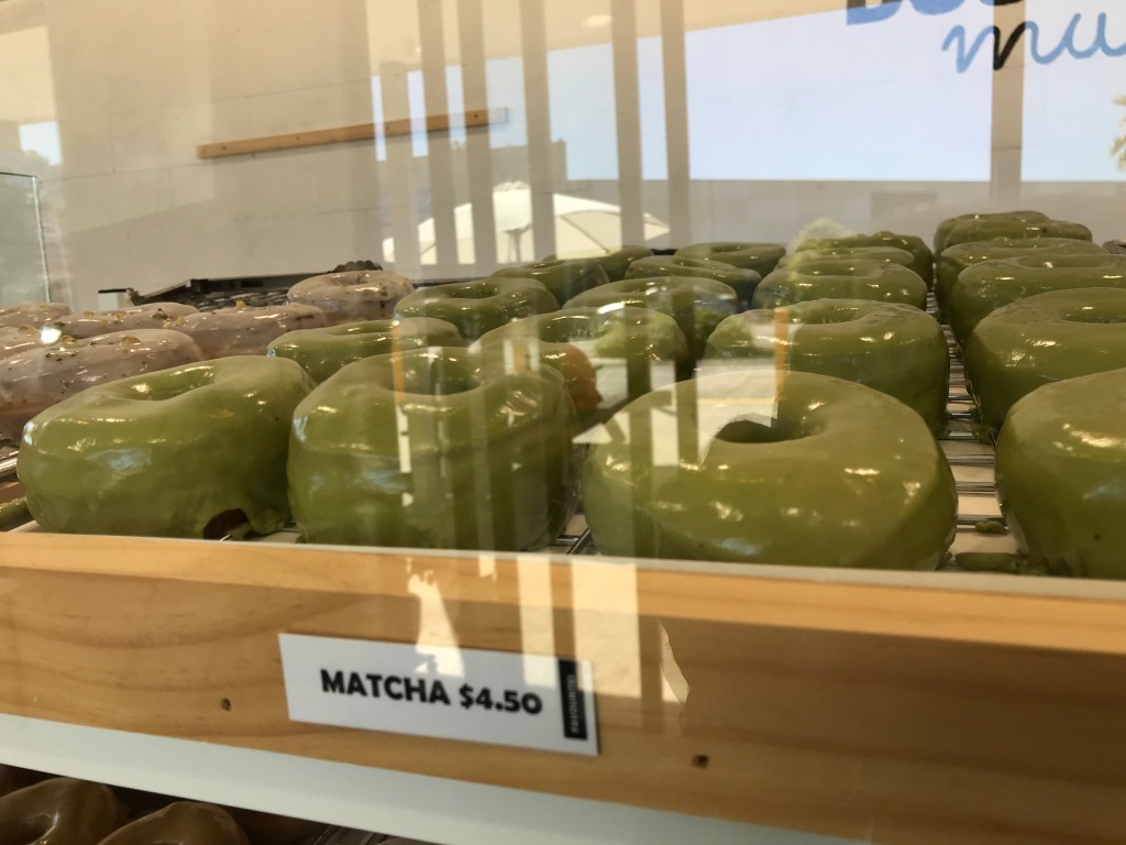 The Matcha Doughnut stands out among the range for its distinctive green colour. Let’s face it, you don’t get too many green doughnuts. And in the window display of mainly beige and brown doughnuts, the Matcha is an eye-catcher (hey, that rhymes).