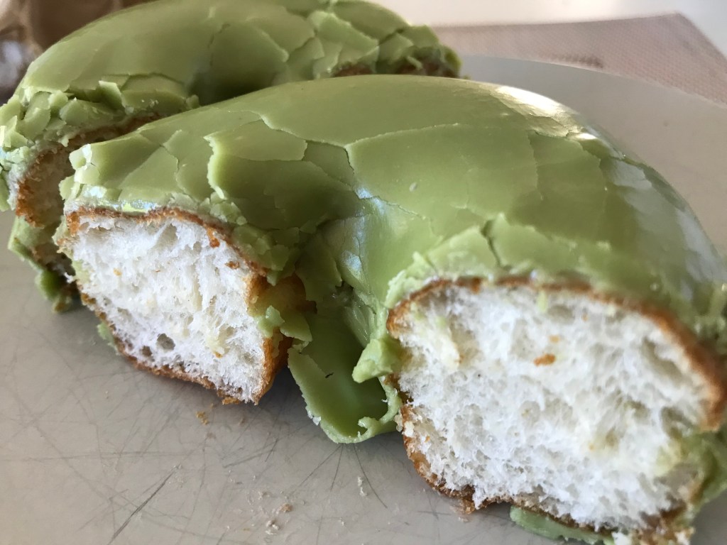 On a recent visit, I bought a few different flavours. The one I’ll talk about here is the Matcha Doughnut.