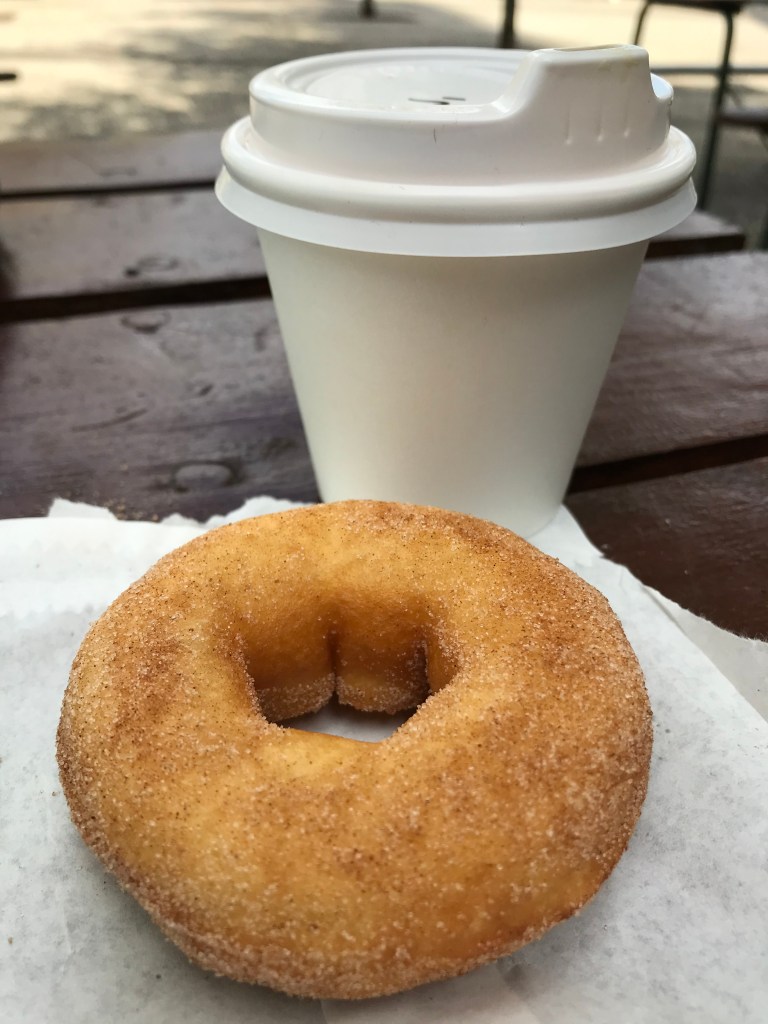 There is a coffee and doughnuts caravan along one of the roads where you can also get some freshly made warm cinnamon doughnuts. Not too bad!