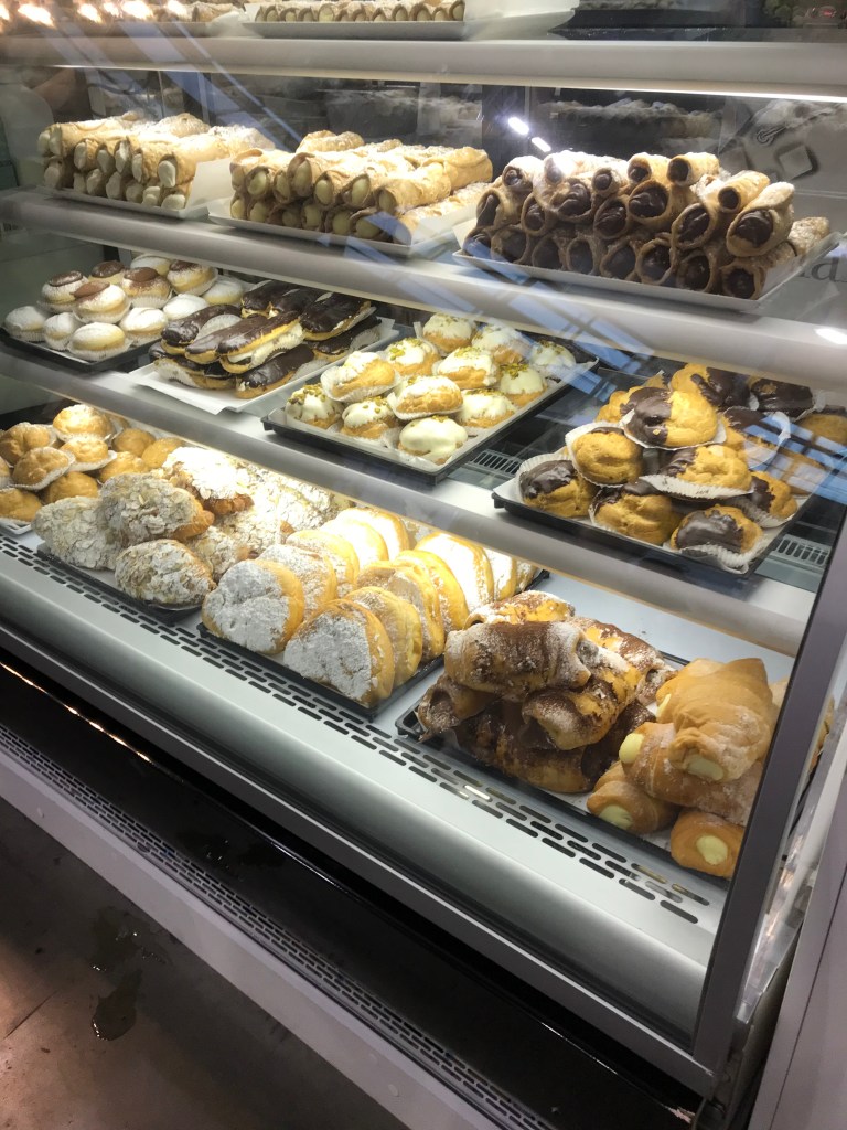 You’ll find a few places selling custard-filled Italian doughnuts in the style of canoli.
