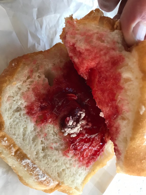 I’ve had their doughnuts and cronuts several times before and this time I’m going to write about their one ostensibly called The Famous Jam Donut.