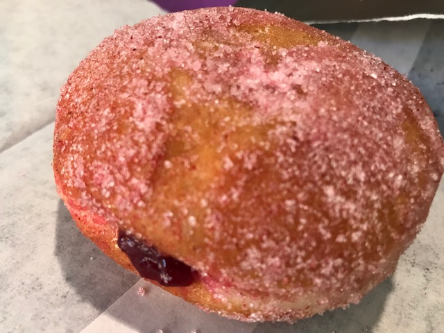 I got a jam-filled doughnut from their stall at the Carriageworks Markets, Redfern. They sell lots of other sourdough products, including of course, bread, as well as some non-sourdough products, including sweet pastries. They don’t have a big range of doughnuts, however.