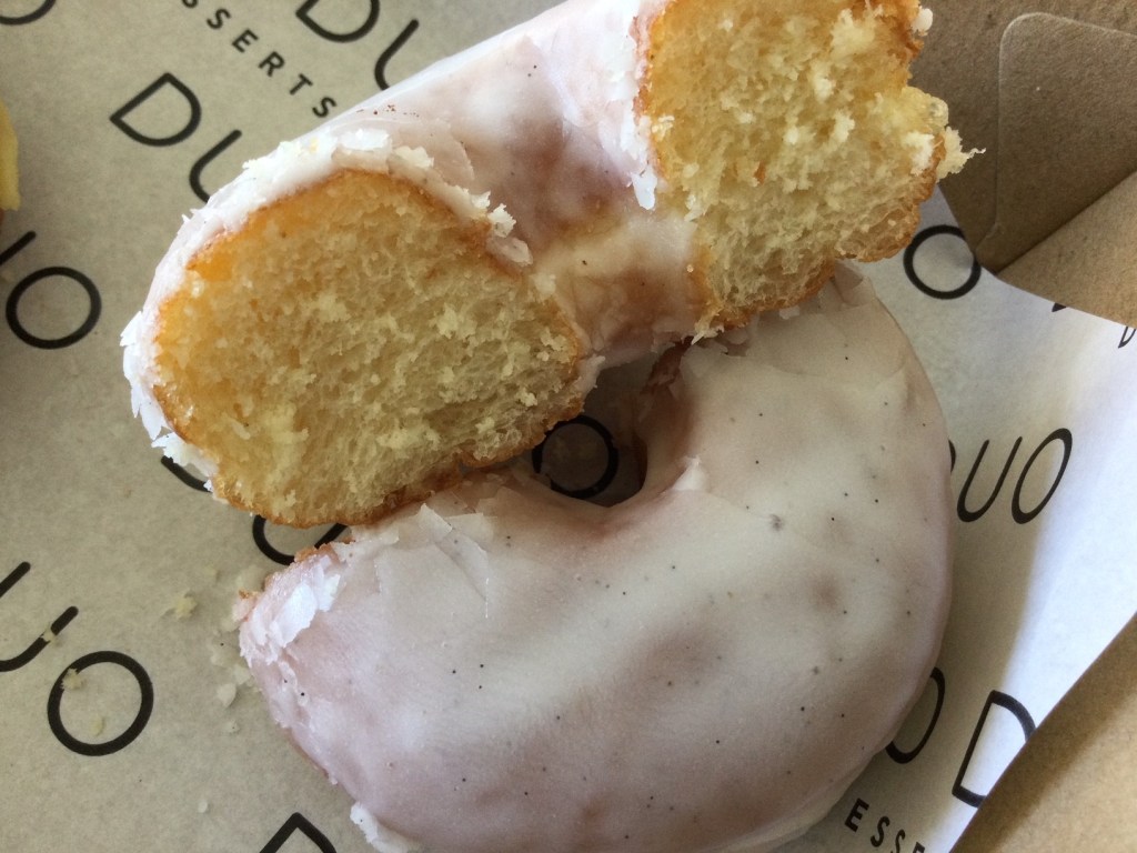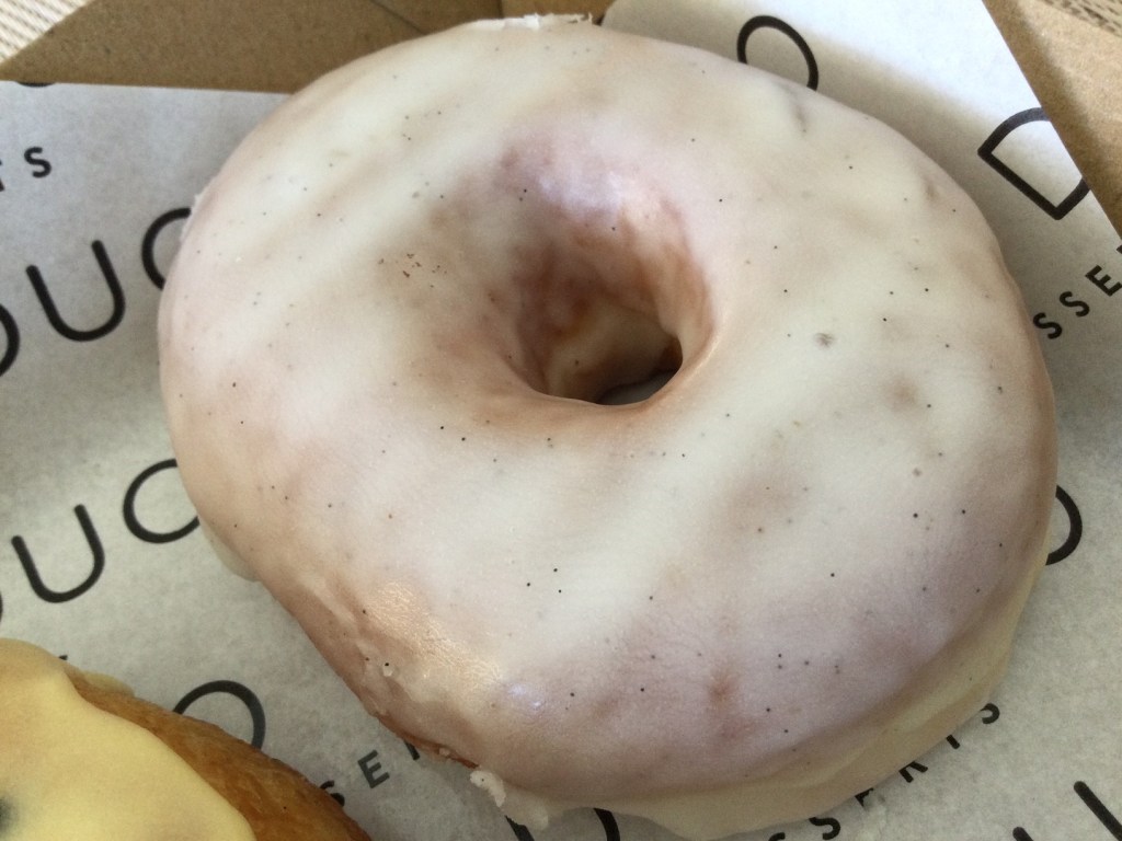 The glazing was vanilla flavour, nicely tangy and not overly sweet. The doughnut was completely covered in the glazing except for the bottom.