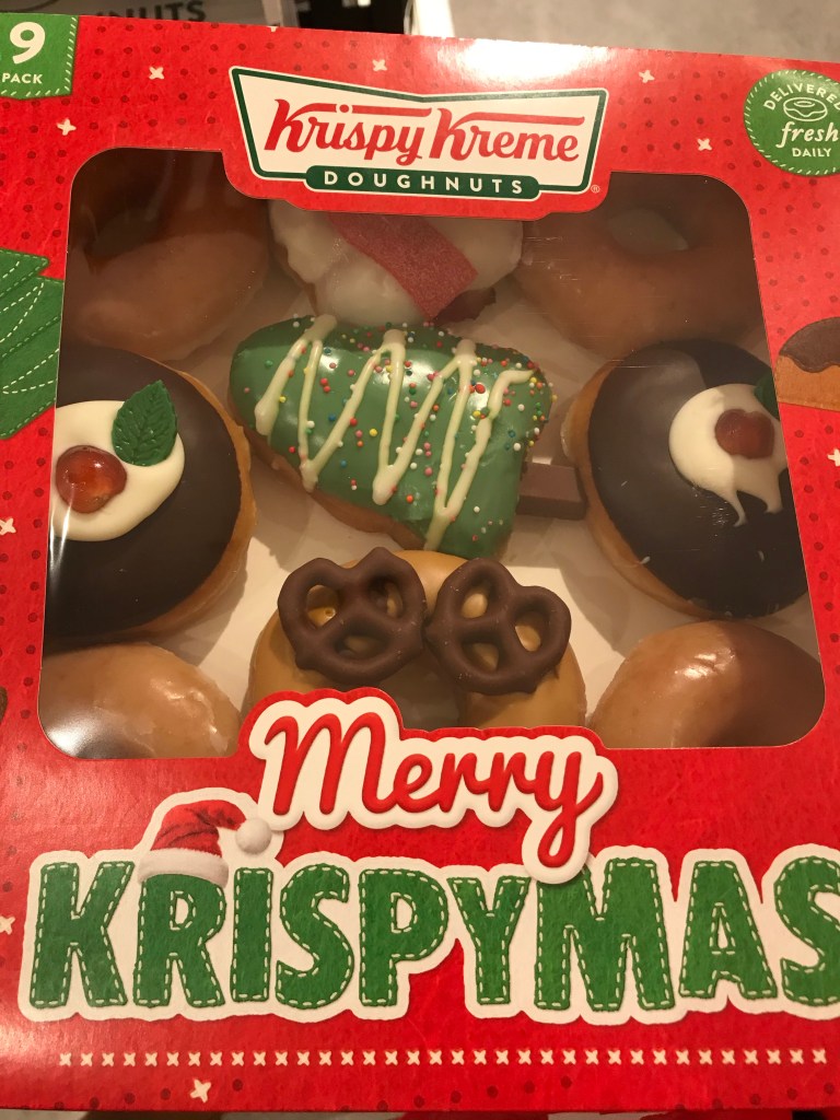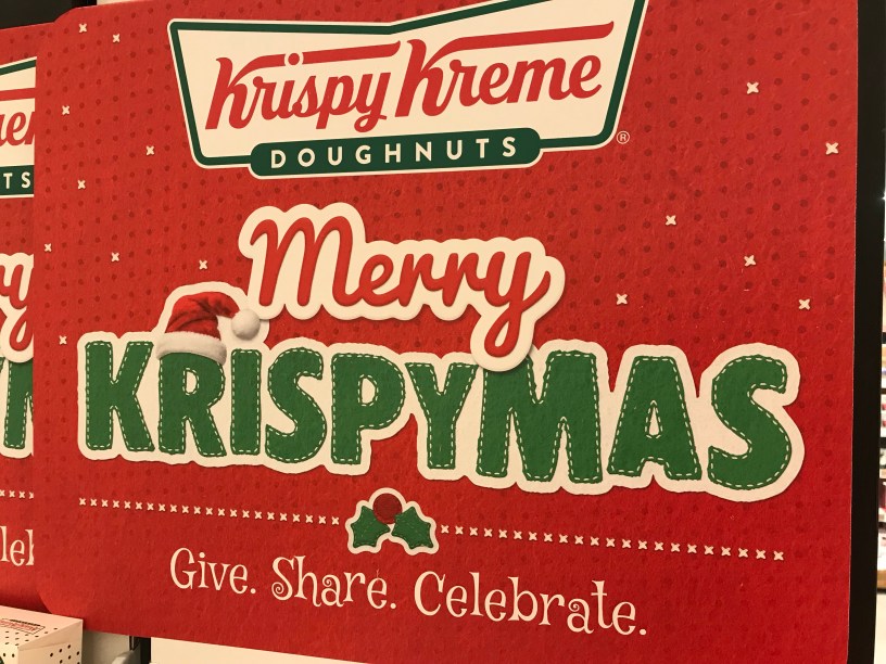 Every year, Krispy Kreme puts out its Christmas doughnuts. I wrote about them two years ago. And they are exactly the same. I would like to think Krispy Kreme has the resources to come up with some new designs.