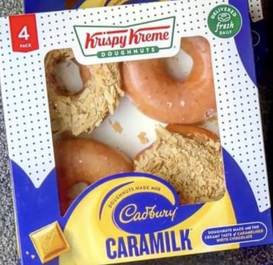 You may find other doughnut stores doing Caramilk flavoured doughnuts, but this one is an official collaboration between Krispy Kreme and Cadbury.