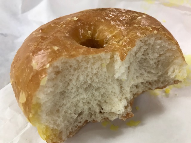 This one brought me back to the days when the pineapple doughnuts were delicious. As I’ve said before, back in the day, there were two types of pineapple doughnuts. The first was soaked in syrup. The other had a flakey glazing on it.