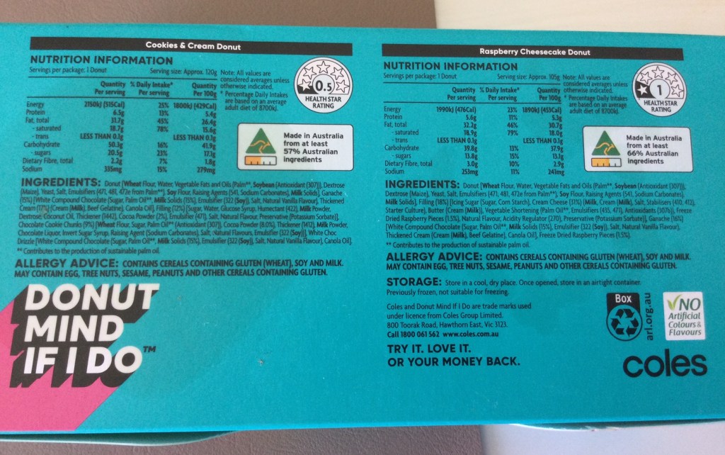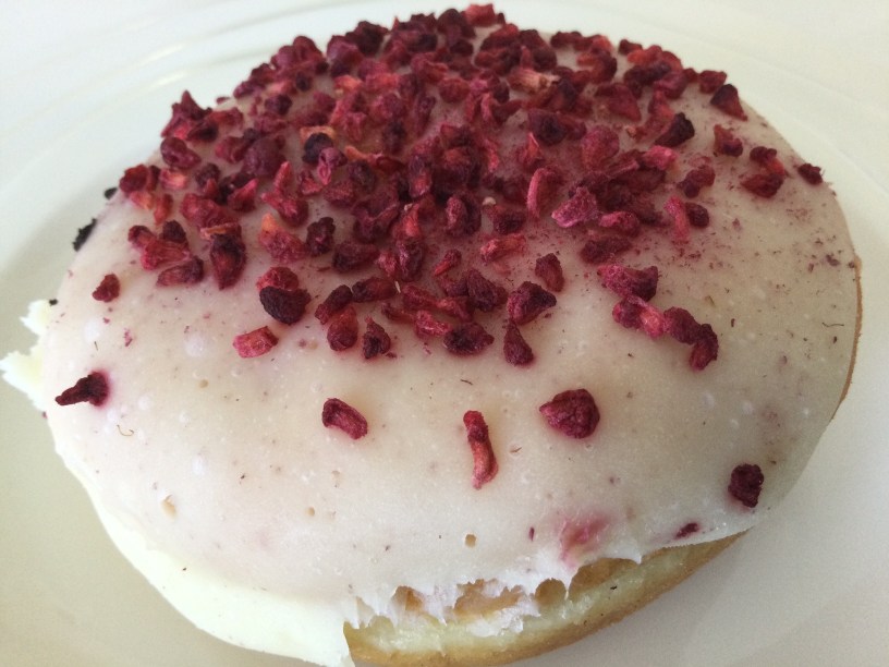 If you enjoy finding typing errors, have a look at the ingredients list for the Raspberry Cheesecake Donut – try to work out the use of brackets and parentheses – holy cow, what a mess.