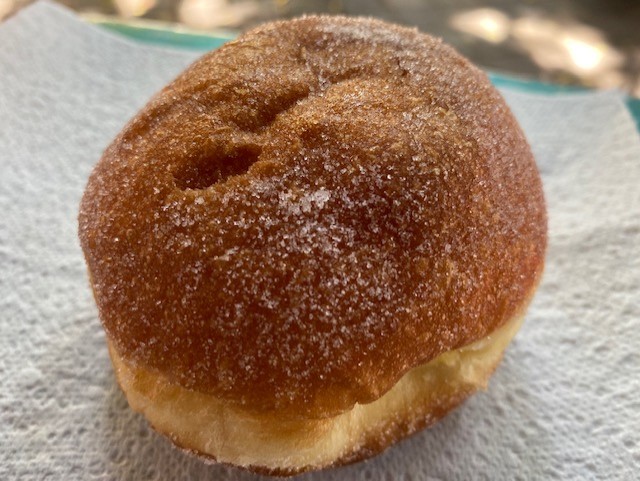 The custard was not too sweet. It had a nice thick consistency. The dough was lovely and slightly chewy. It was coated in fine sugar.
