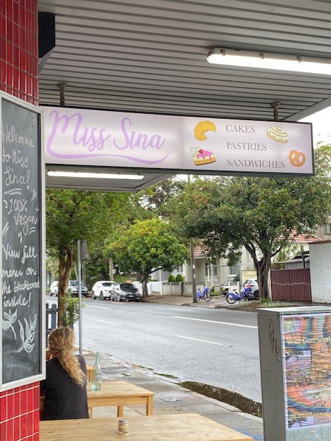 Miss Sina is a popular little cafe that makes their own pastries in a tucked away section of Marrickville. One thing to be aware of about Miss Sina – everything is vegan.
