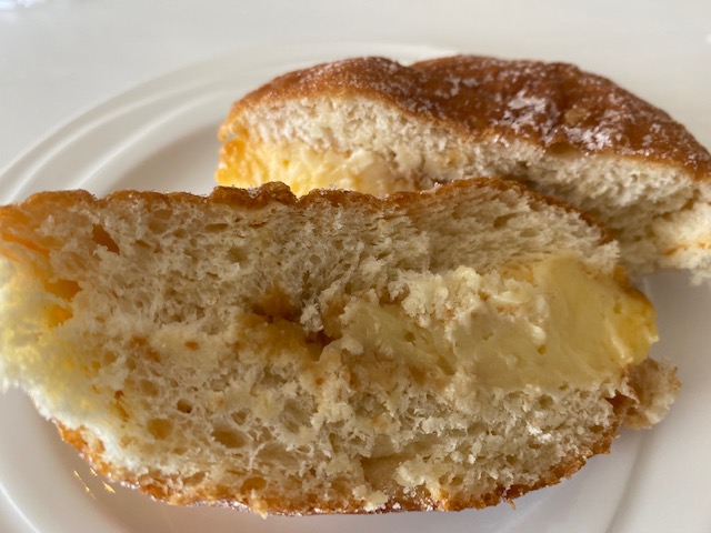 I got a Custard and Caramel-filled Doughnut. They had jam ones there too, but since I have never had a doughnut that had custard and caramel together, I thought I had better try it.