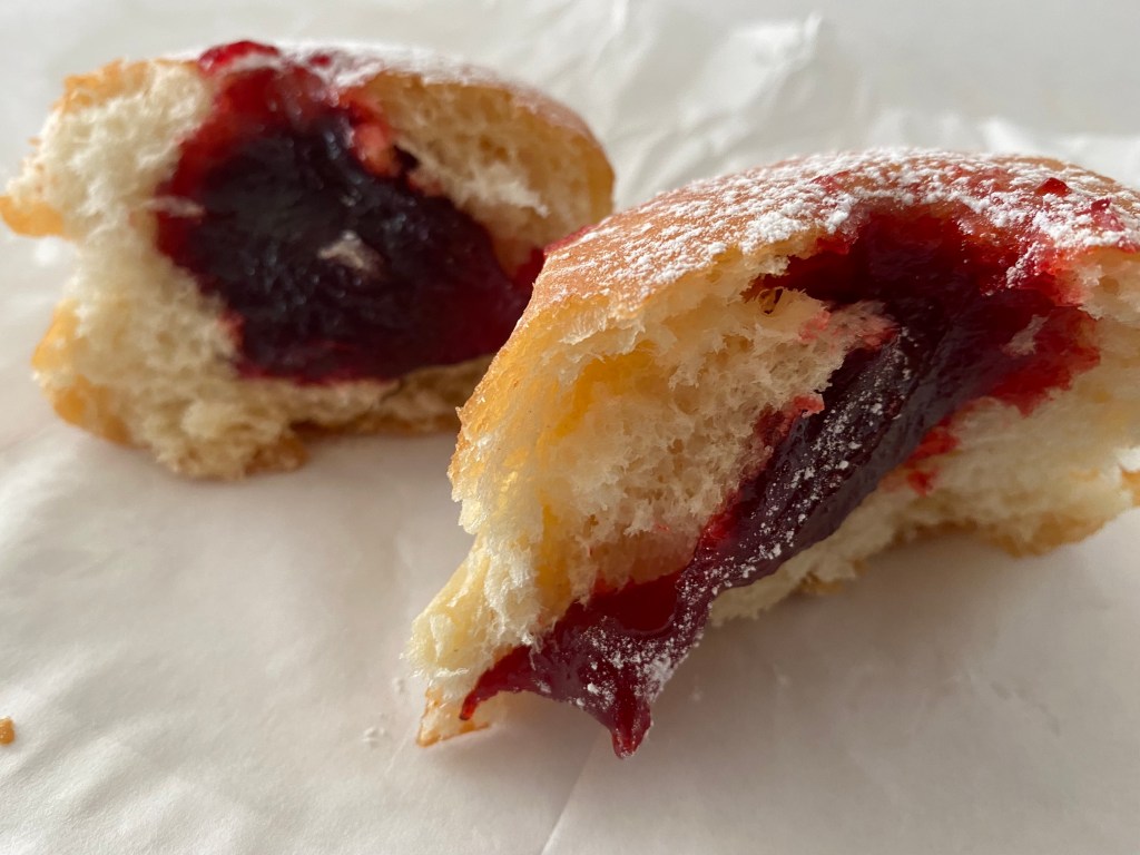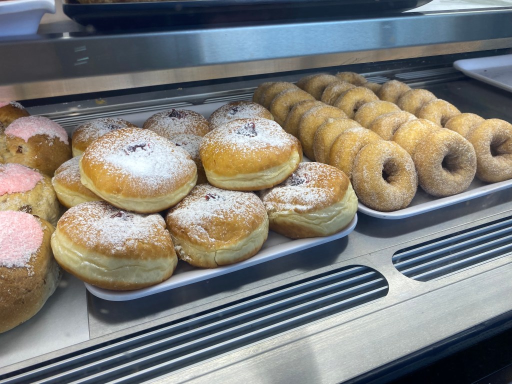 They had cinnamon and jam doughnuts. I got a jam doughnut.