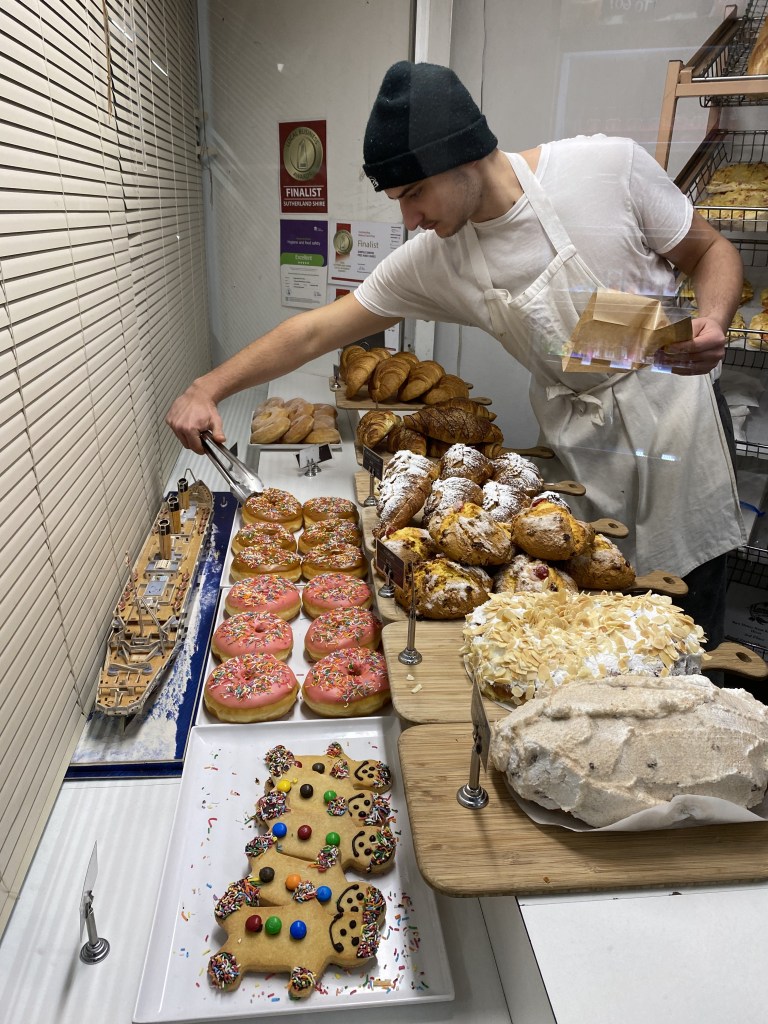 Just after I walked in, the guy out the back called out to me, letting me know he wouldn’t be long. Next minute, he’s walking out with two trays of freshly made iced doughnuts. I asked him if he just made them, and he said he did. What timing!