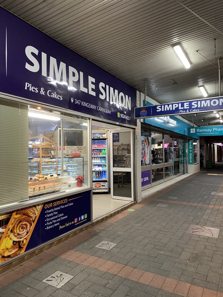I was in Caringbah early one morning and noticed Simple Simon Pies was opened. Caringbah is in Sydney’s Sutherland Shire and the shop is right near the entrance to Caringbah train station.