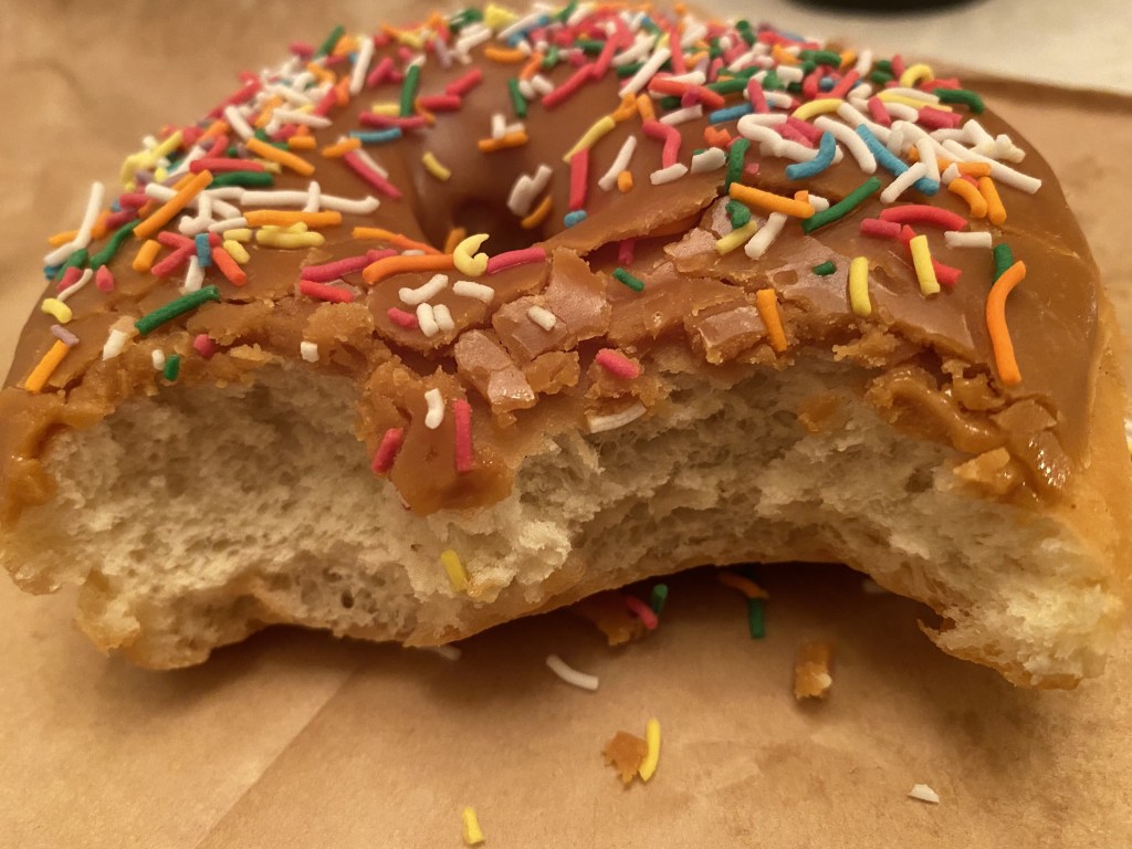 It had sprinkles, which is usually a giveaway that these doughnuts are for kids, but damn the kids, I was there first.