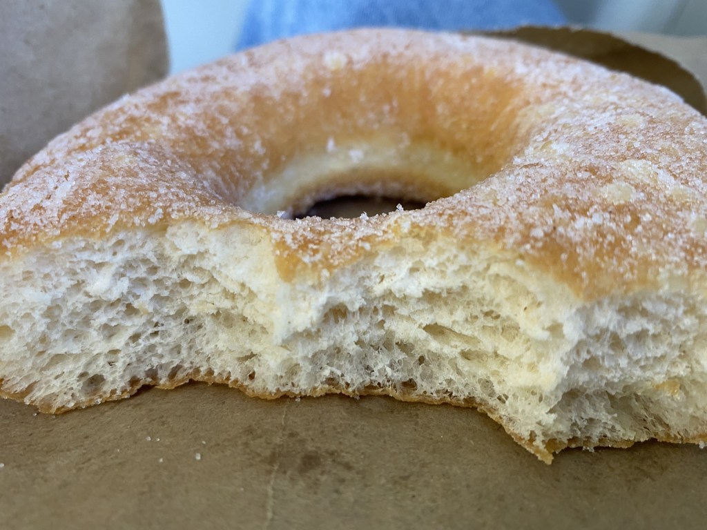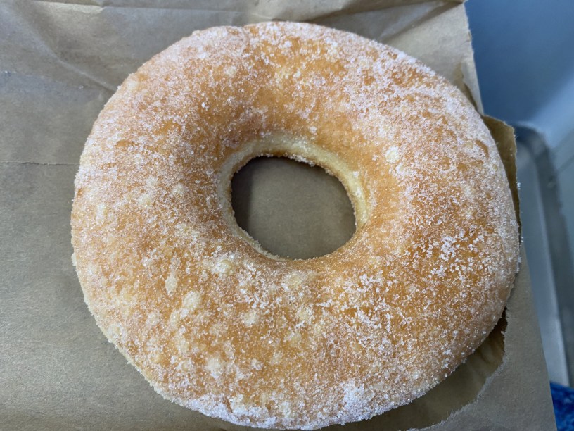 Note – it’s not cinnamon. It’s a plain doughnut coated in sugar. It’s a large size.
