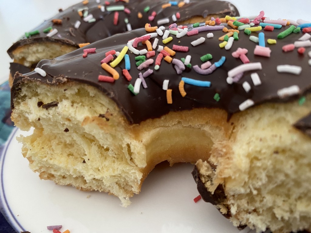 The doughnut was soft with a slightly yellow hue. It was nicely cooked and went down well.