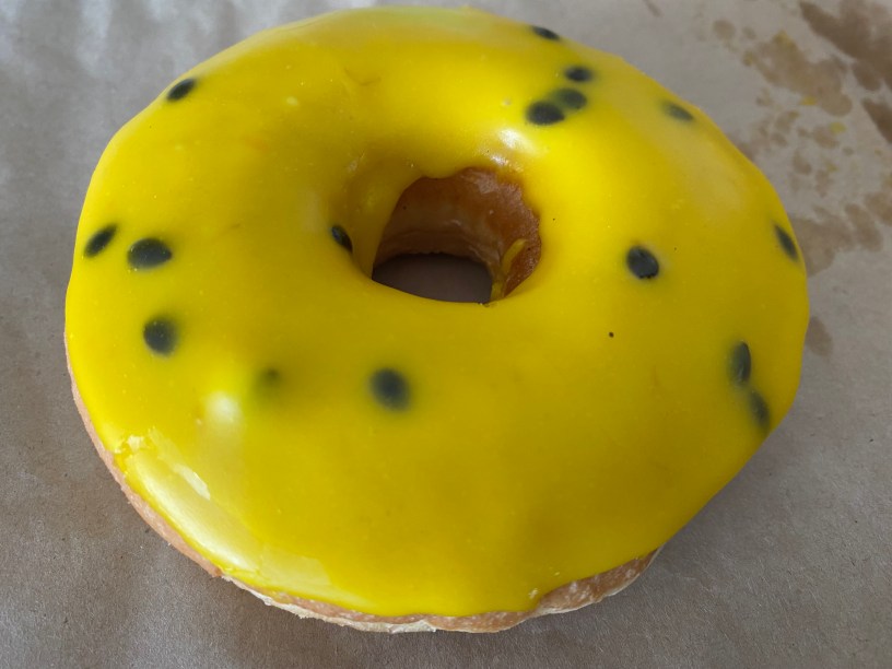 When I got there, they didn’t have a big selection of doughnuts. I chose one with passion fruit icing.