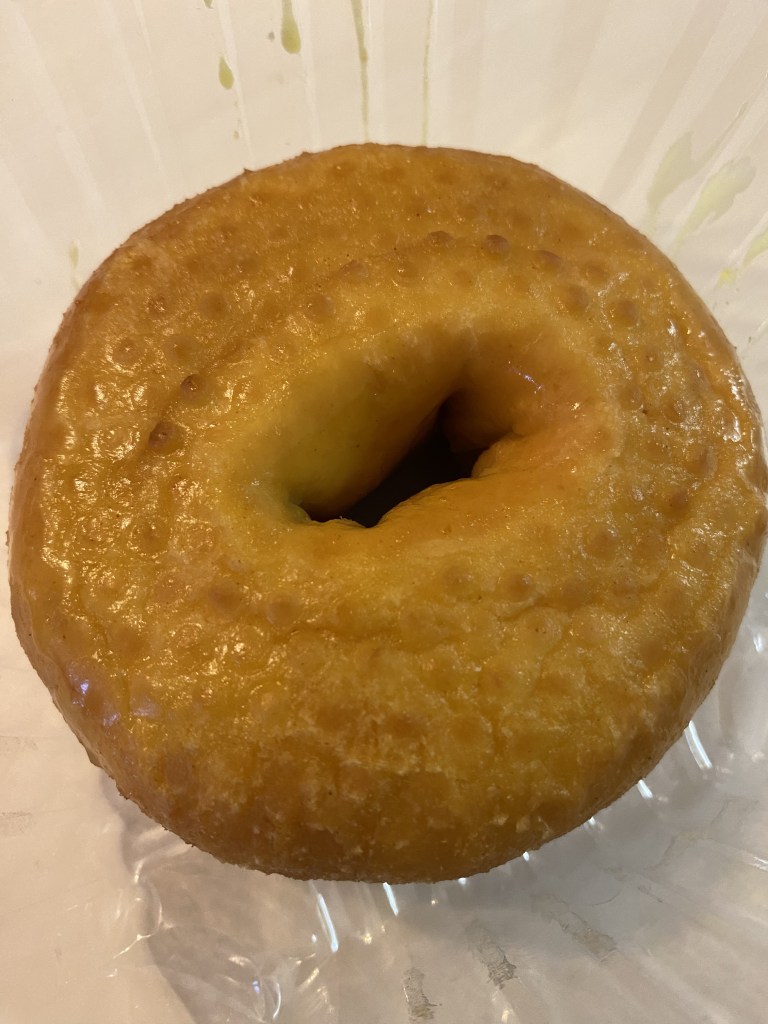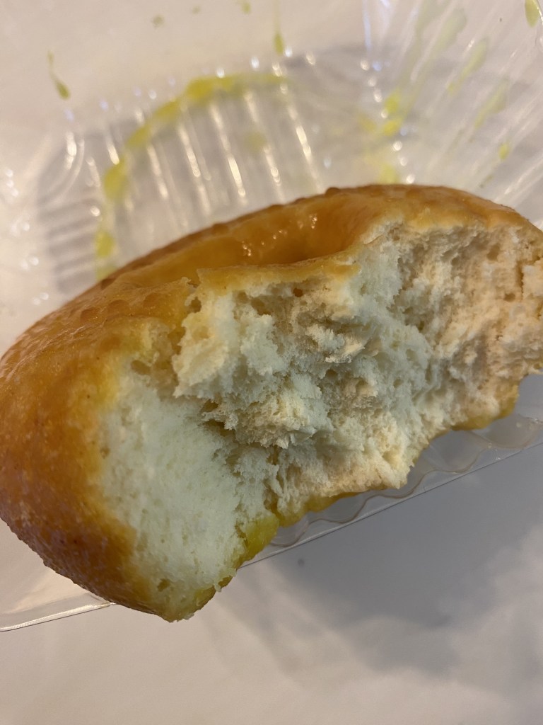 The dough was dense and lifeless. It left a bitter aftertaste, which probably means it had been frozen and defrosted.