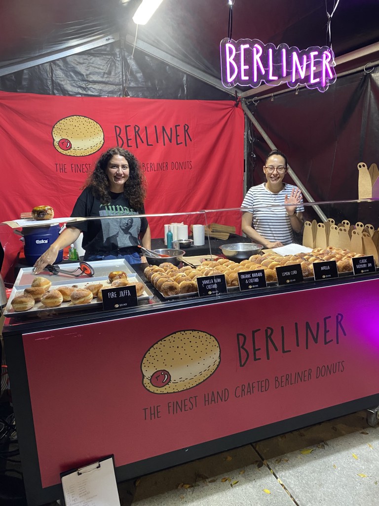 Berliner Donuts are popping up at lots of markets and events. The latest one, and for a short time only, is at VIVID Sydney 2024. You’ll find them at the Goodsline which is between Central Station and Darling Harbour with lots of other food trucks, as well as the Fire Kitchen stage where a theatrical food smoking demonstration takes place.