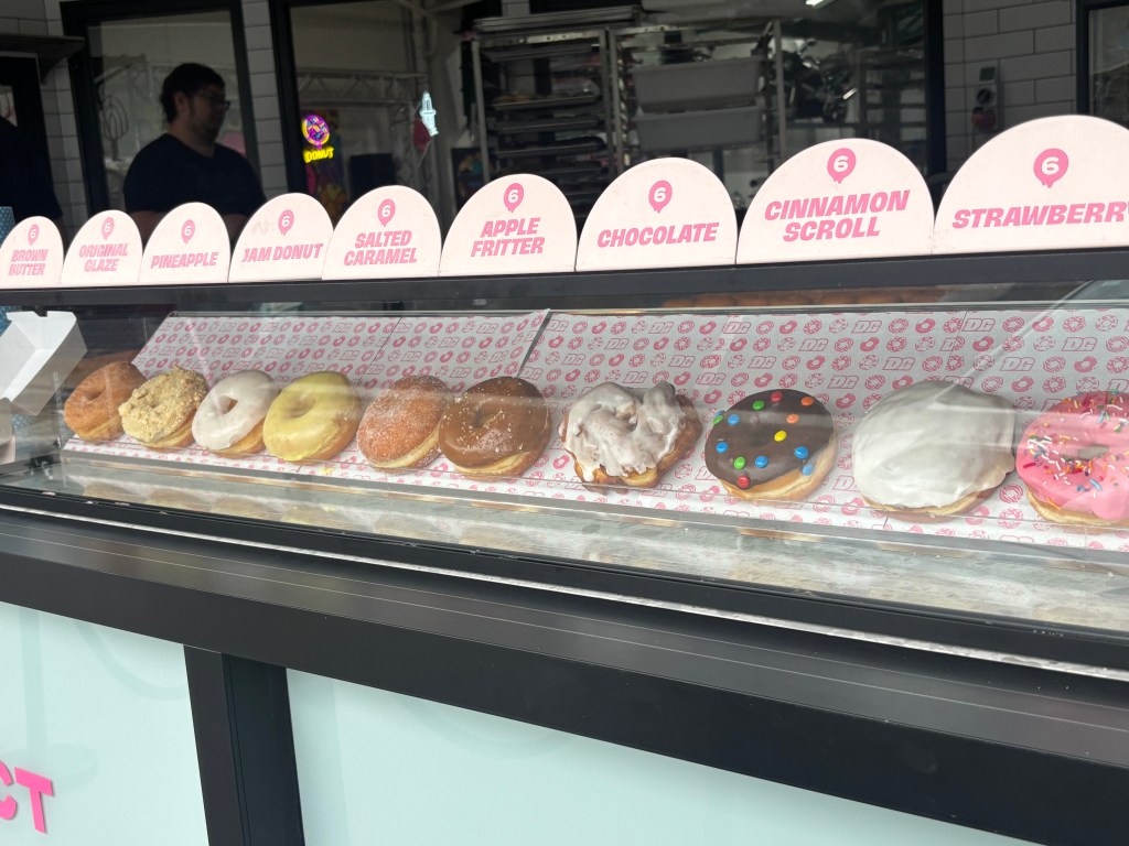 The thing with jam doughnuts is that they can be filled with real jam or fake jam. Not that the fake jam is all that bad. It’s just nicer having real jam, which is usually either homemade or supplied from a boutique jam maker. The fake jam is commercially supplied and is usually seedless and actually made from apple puree with flavour added. Doughnuts with fake jam are usually cheaper than ones with homemade jam, and the jam is sweeter than homemade jam.