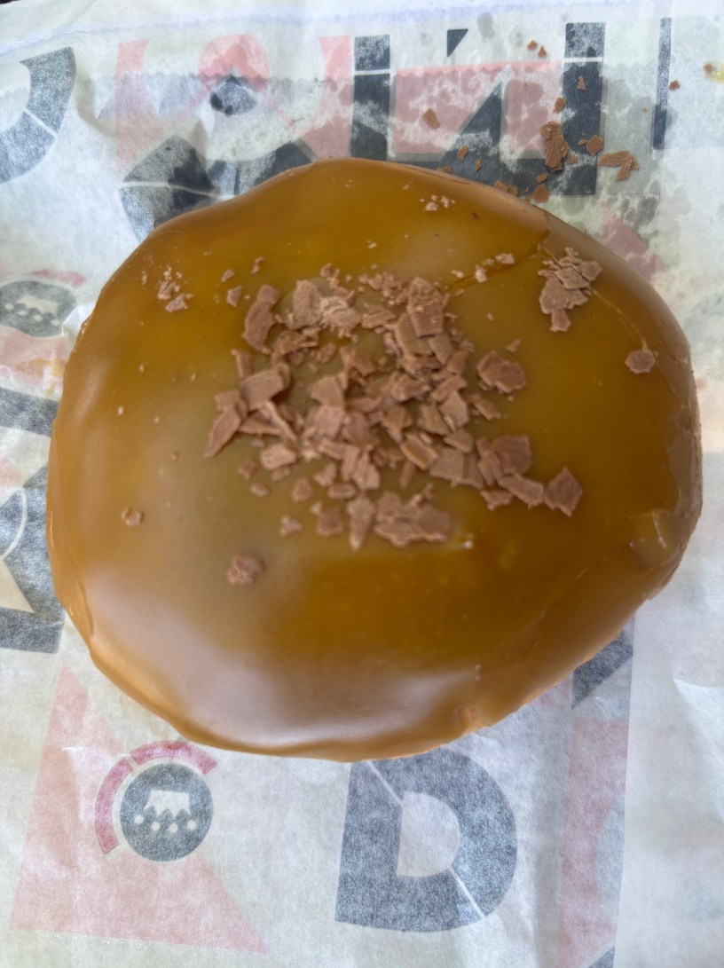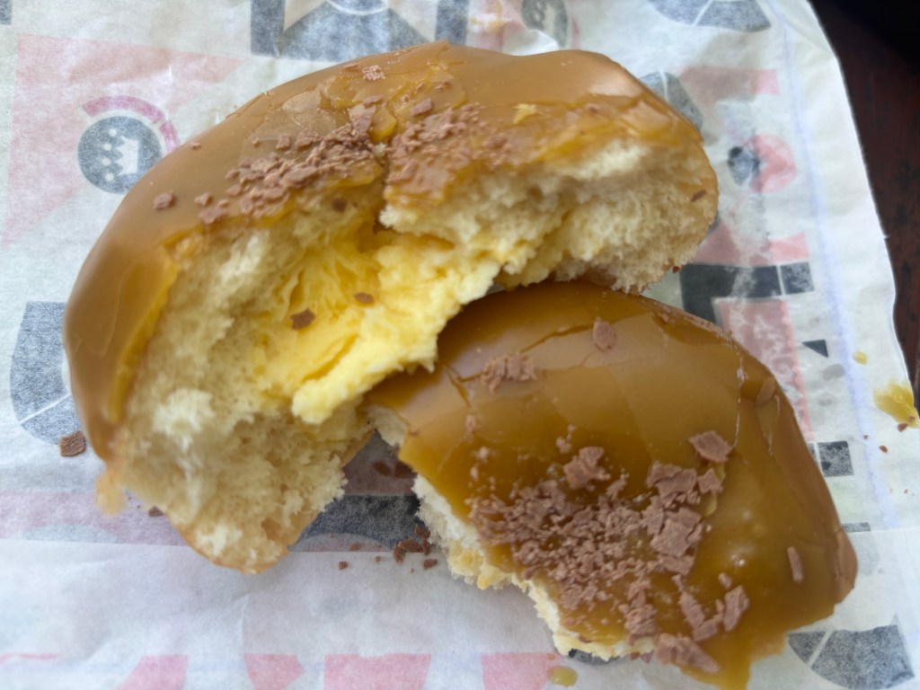 There wasn’t enough custard inside it and the custard wasn’t great anyway. The caramel icing was okay and it had chocolate flakes on top for good measure.