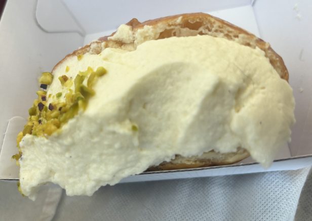 Firstly, they call their doughnuts Maratozzi. I have never heard of them before. I googled them. Despite their spelling error (Maritozzi), they are a brioche bun filled with cream. Not an exact match, but very similar to a doughnut. I’ve seen similar things from other sellers who call them Italian Doughnuts.