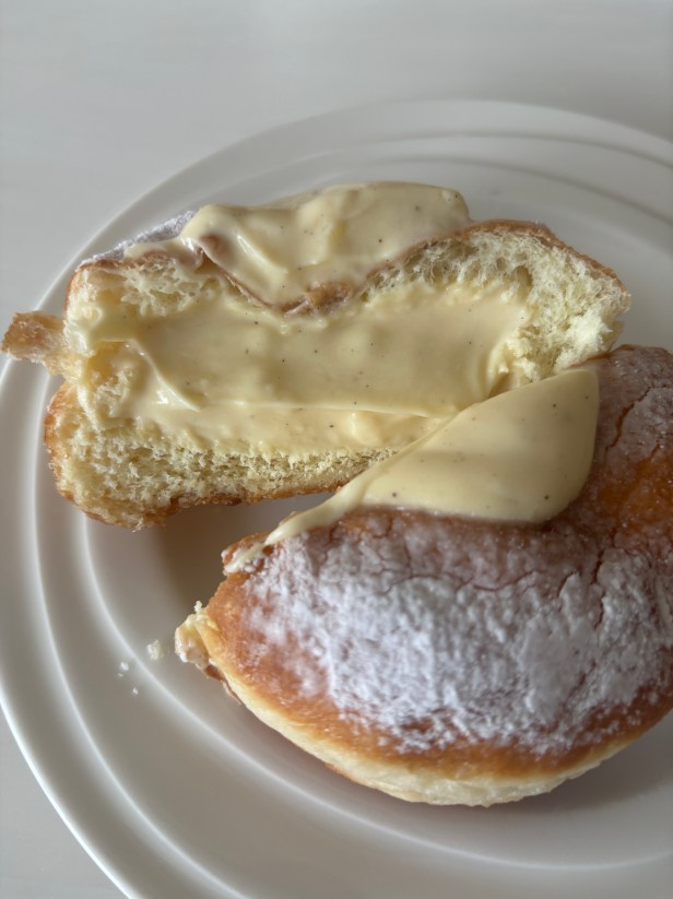 If you want a donut from Pierre in West Oatley, you had better hurry. It’s just a six-week pop-up and only on weekends. I’ll tell you the story a bit later. For now, I’ll talk about the Custard Donut I got.
