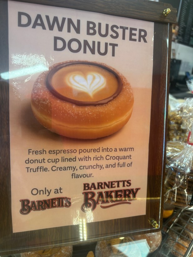 I noticed a sign for their ‘Dawn Buster Donut’ – a coffee in a warm donut cup lined with chocolate. I was so tempted to get it, but I opted for the Jam Donut instead with an eye on getting my coffee from the well-known cafe down the road.