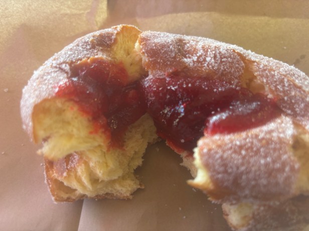 I would have liked the jam to have been homemade jam. Instead it was commercially made jam puree. A small disappointment with an otherwise delicious donut.