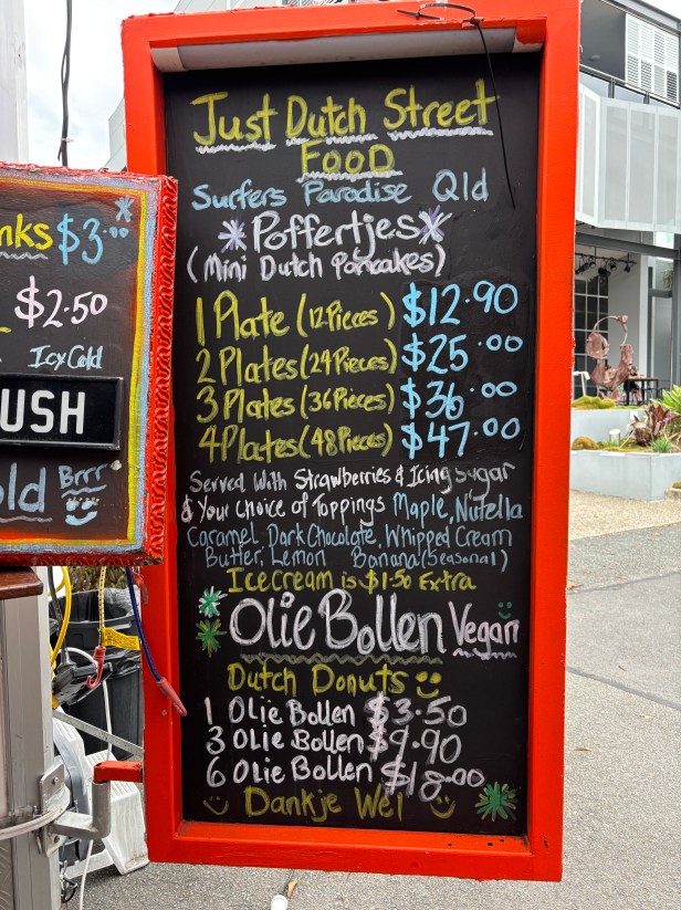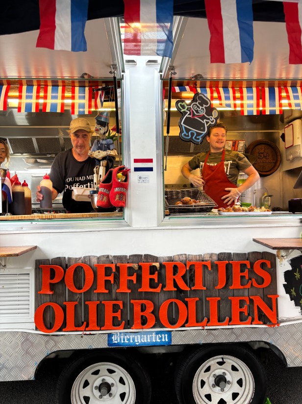 There were a couple of doughnut options, but the one I liked the look of most was the Dutch stand selling freshly-made Dutch Donuts – Olie Bollen. (I’m not sure of the name of the stand).