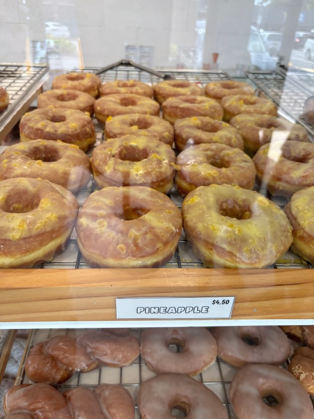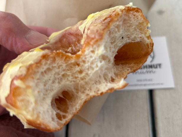 The pineapple glazing had a nice zing to it. It cracked a lot and fell off the doughnut, but with careful eating you can save the flavour from falling onto your lap.