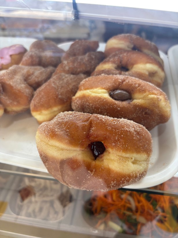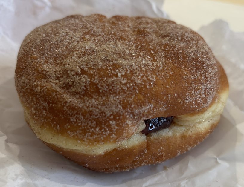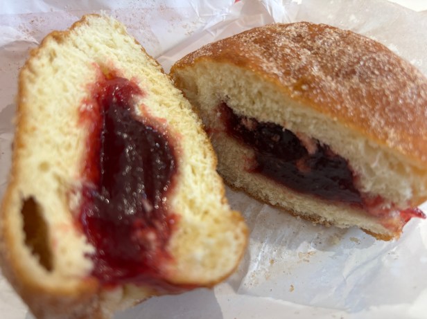 It had a lot of jam filling. The filling was the commercial jam – not homemade, but that’s typical of hot bread shops where donuts aren’t a priority product.